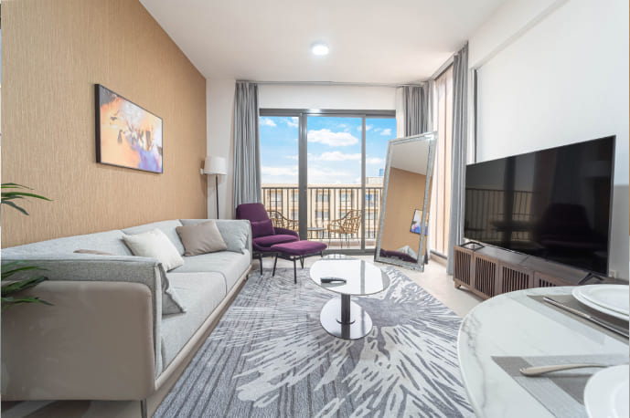Fabrication, production and installation of furniture for 2 flats 1BHK in uptown Zahia Sharjah, year 2024